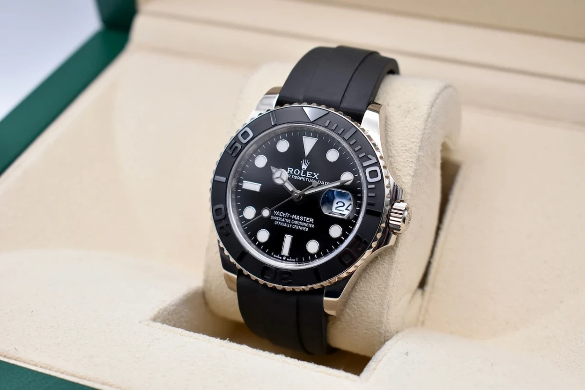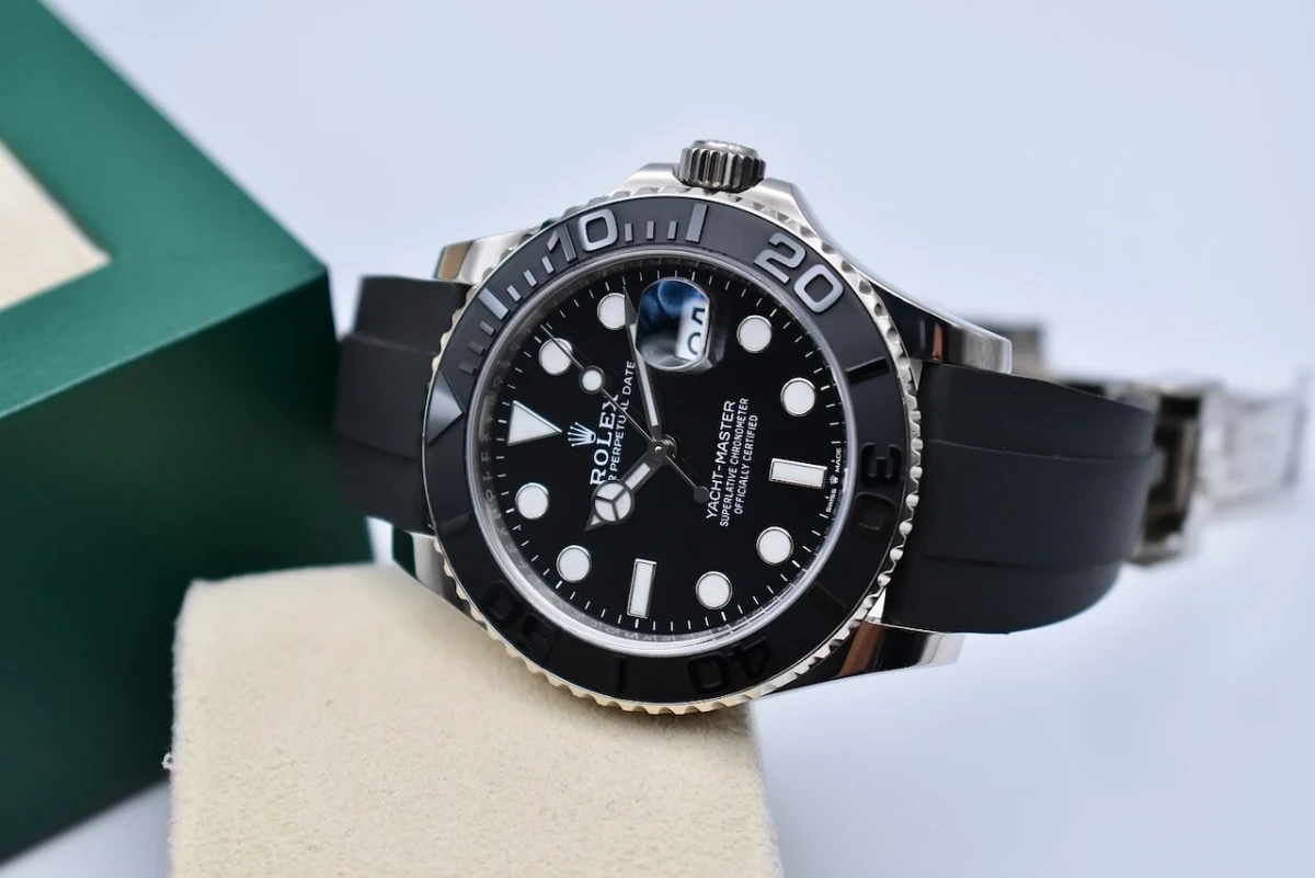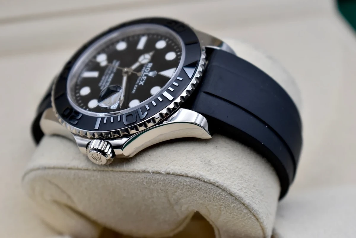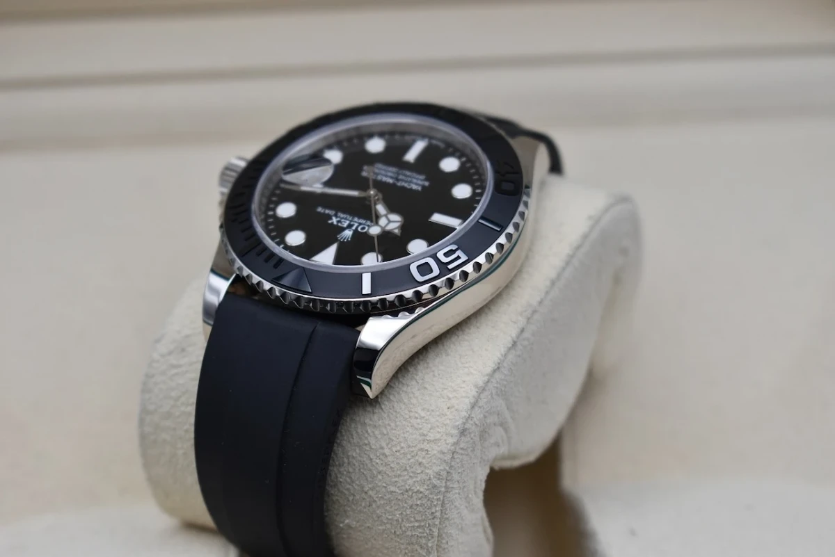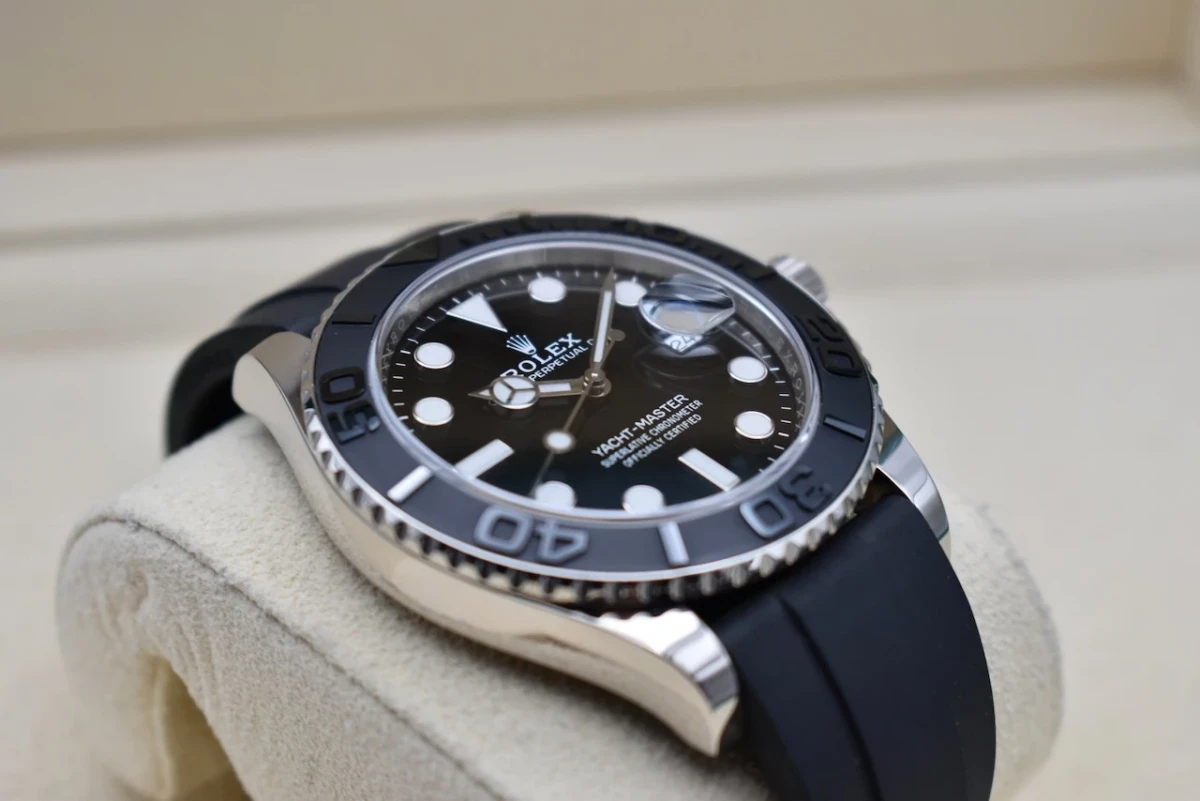 One of the most striking features of the Yachtmaster 42 is its Oysterflex bracelet. Made of a flexible metal blades and coated in a high-performance elastomer, this bracelet provides both comfort and durability. It also has a patented Oysterlock clasp with the Rolex Glidelock extension system, allowing for easy adjustment and a secure fit.