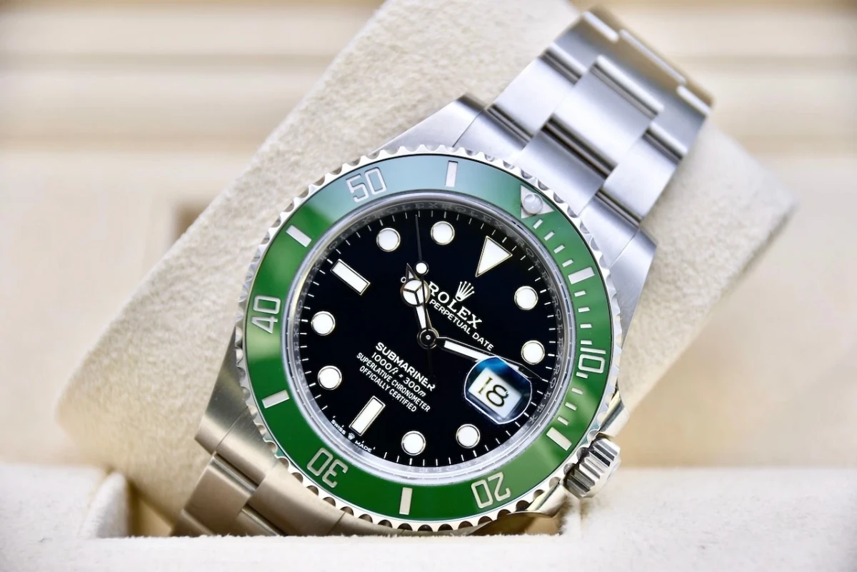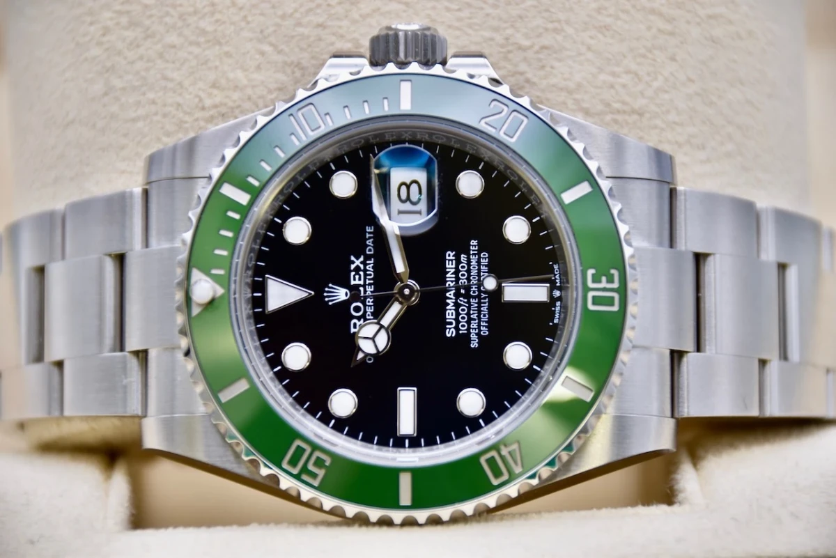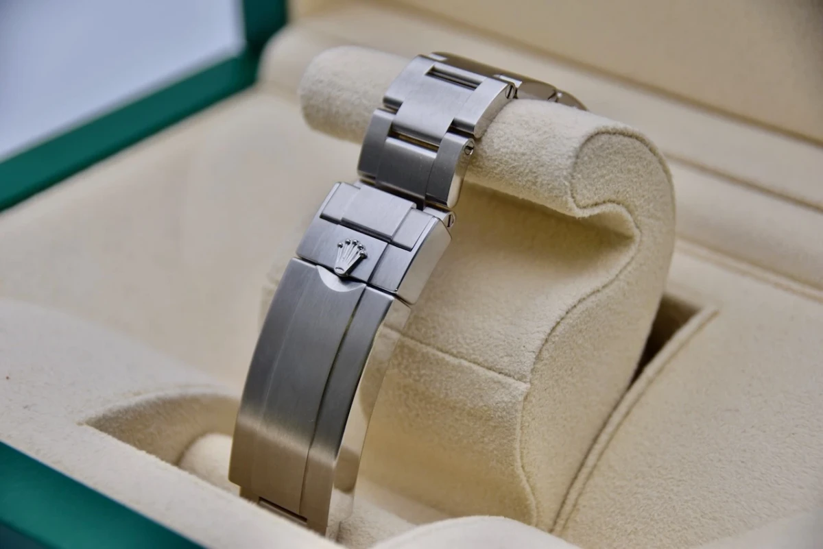 The watch is powered by a Swiss quartz movement, ensuring accurate timekeeping. The strap is a black satin strap with an 18kt rose gold folding buckle, providing comfort and elegance to the wrist.