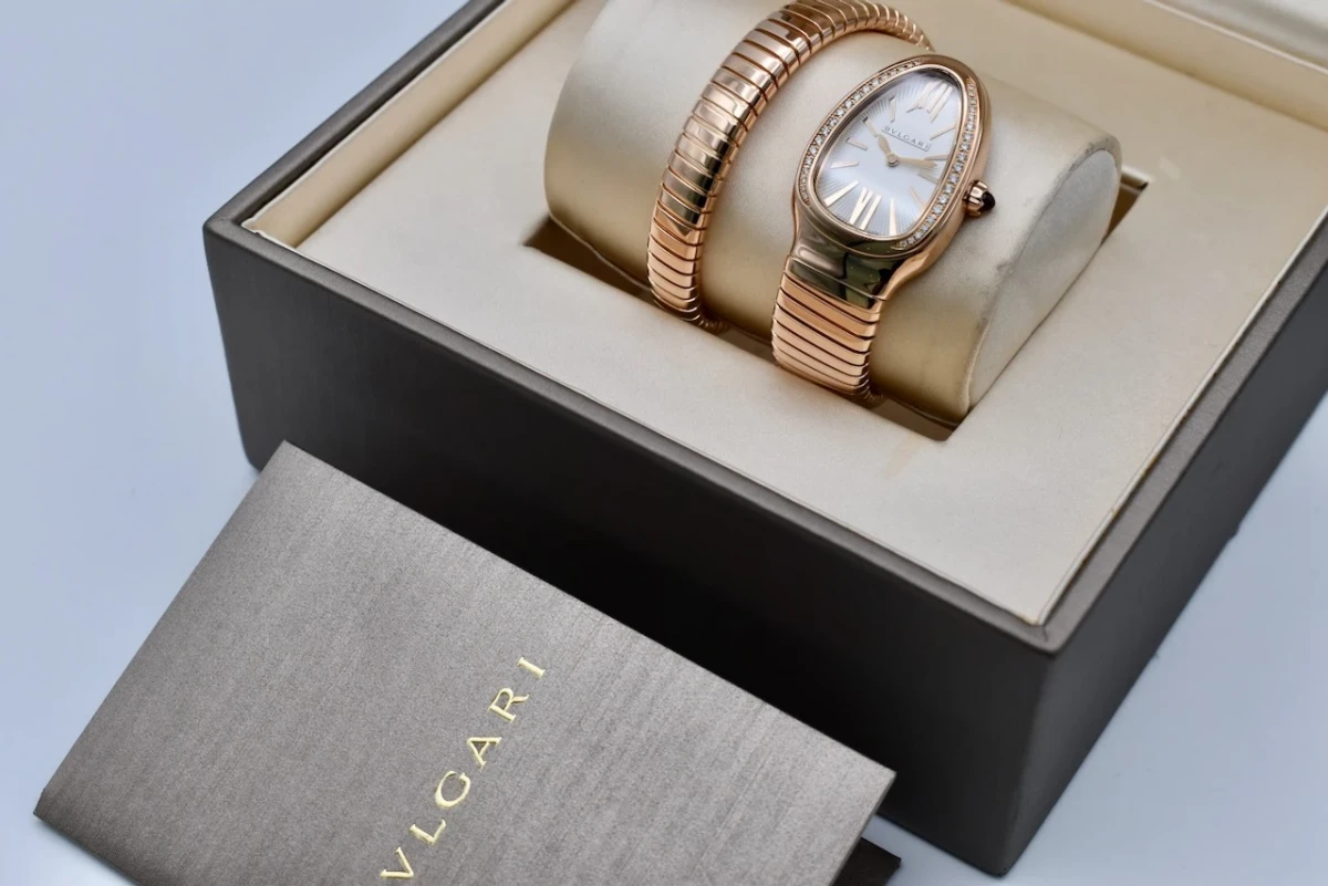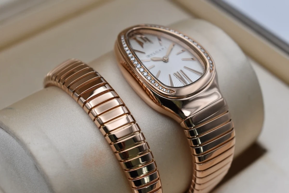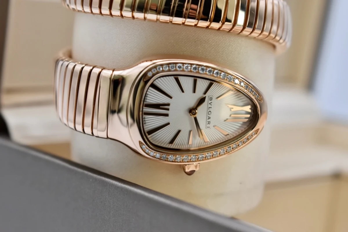 The Bulgari Serpenti Rose Gold watch, model 103003, is a luxurious and iconic timepiece that perfectly combines elegance and boldness.