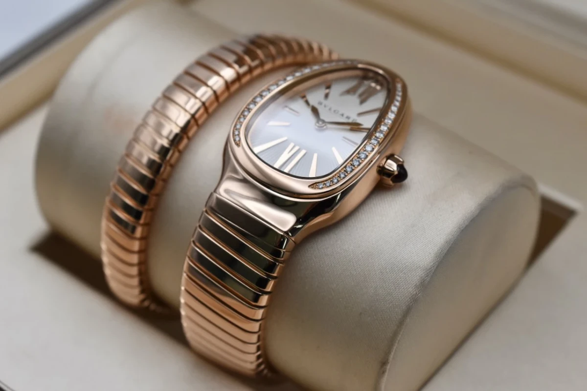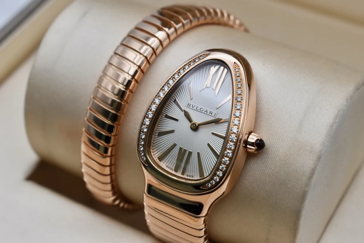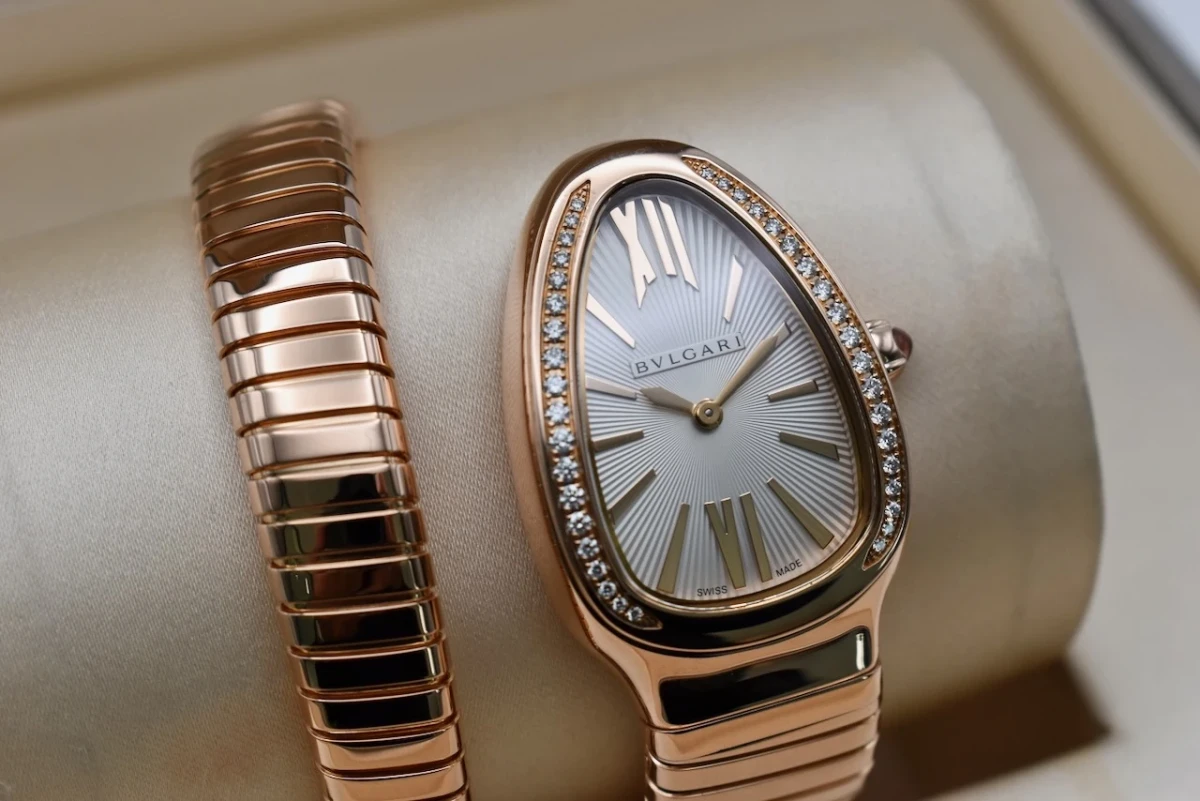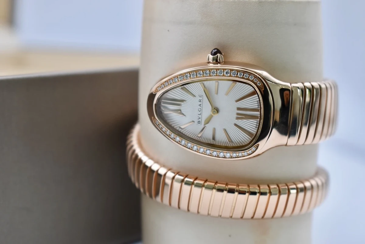 The Bulgari Serpenti Rose Gold watch, model 103003, is a luxurious and iconic timepiece that perfectly combines elegance and boldness.
