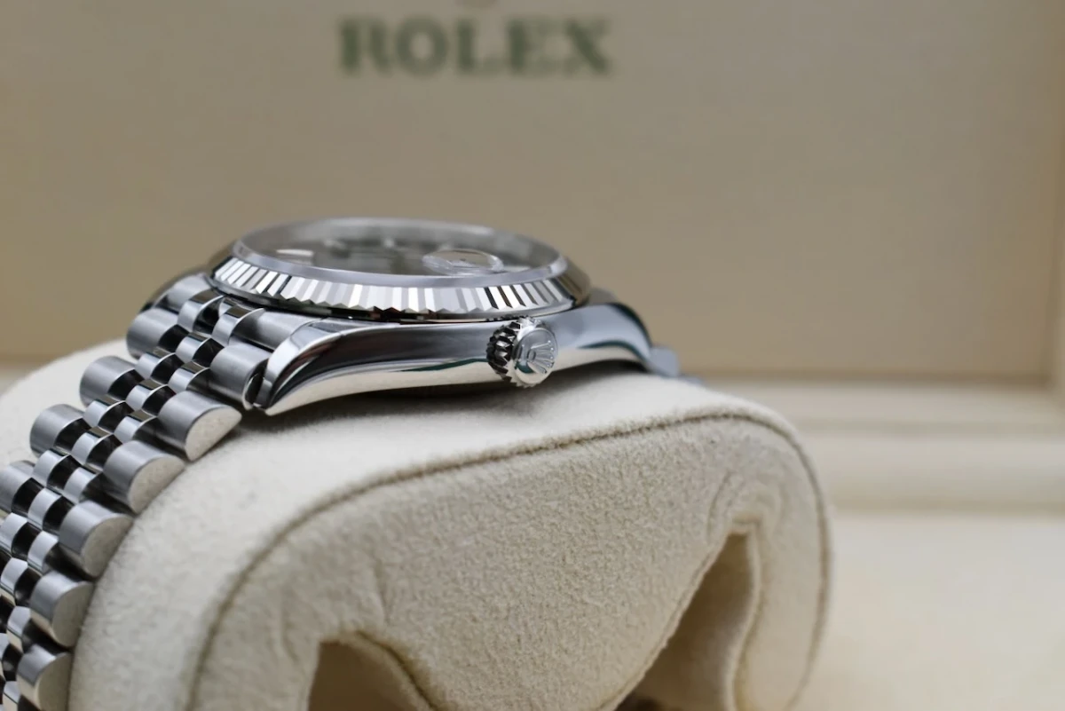 The Datejust 36mm also boasts a beautiful jubilee bracelet, one of Rolex's most prized and iconic bracelets. It is crafted from a combination of 904L stainless steel and 18ct white gold, resulting in a luxurious and comfortable fit. The bracelet is secured with a folding Oysterclasp, featuring the iconic Rolex crown logo.