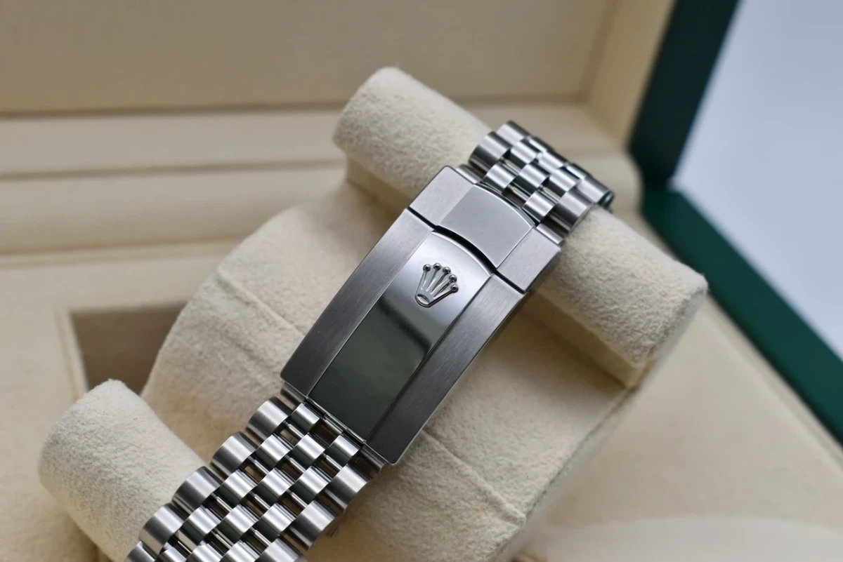 At the heart of this watch is the legendary Rolex caliber 3235 self-winding movement, known for its precision and reliability. This movement is housed within a 36mm Oyster case, crafted from 904L stainless steel for its exceptional durability and resistance to corrosion.