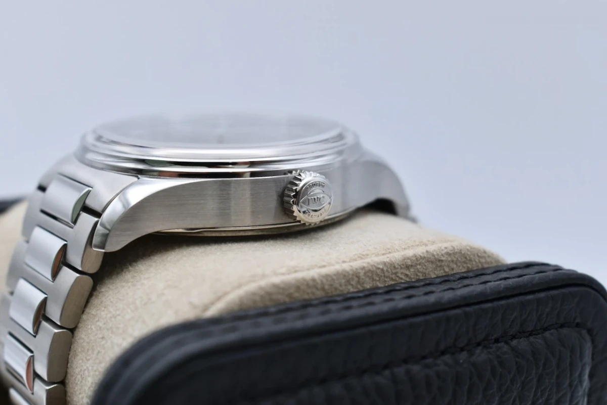 With its sleek, sophisticated design and high-quality materials, the IWC Portuguese 7 Day is a true statement piece for any wrist. The white dial is minimalistic yet striking, with elegant Arabic numerals and a date display at the 6 o'clock position. The stainless steel bracelet adds a touch of luxury and durability, perfect for everyday wear.