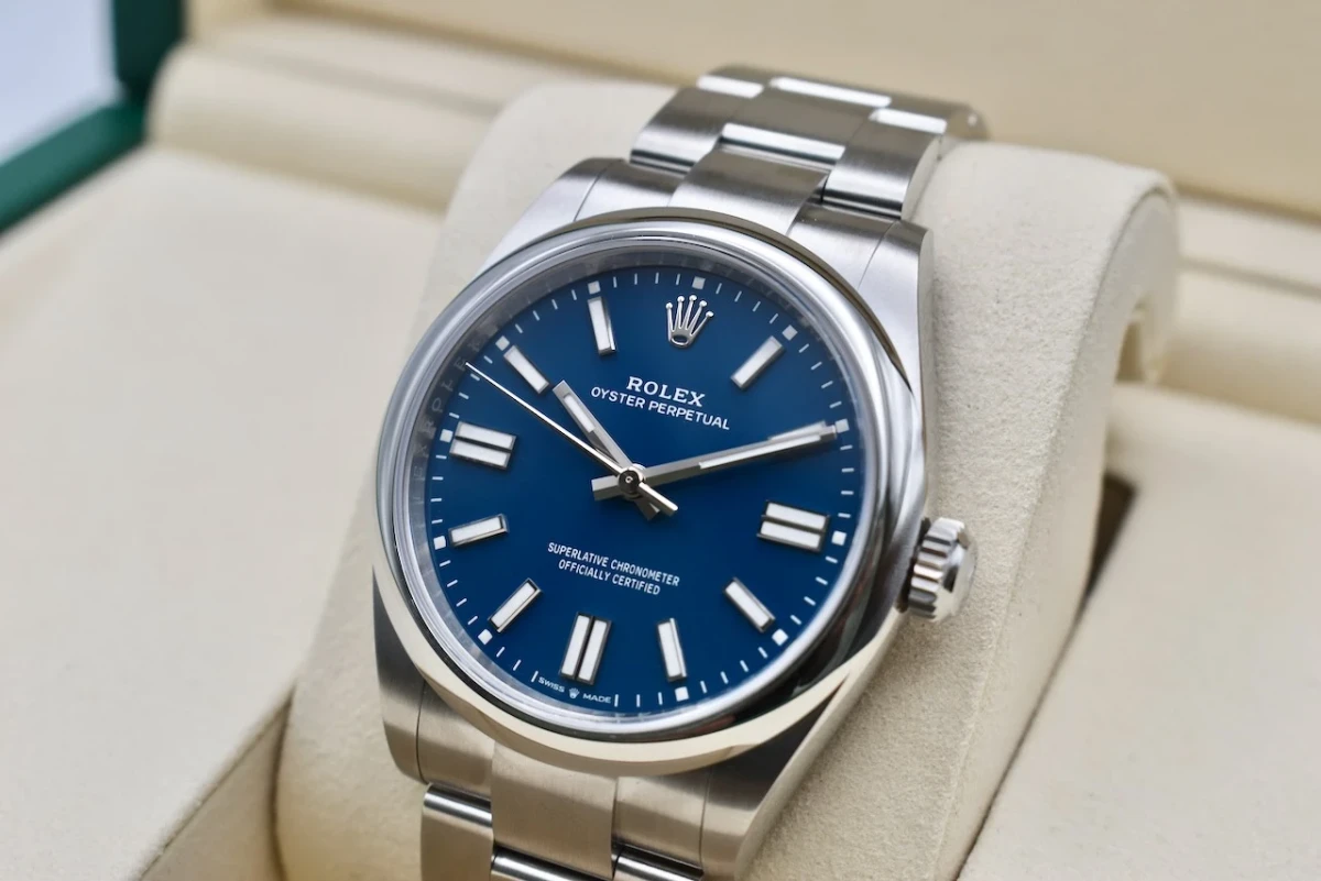 The Rolex Oyster Perpetual 41 (Ref. 134300) in the striking blue dial is part of the exciting 2025 Rolex release, showcasing the perfect balance of timeless design and modern watchmaking. Crafted in stainless steel (Oystersteel) with a robust 41mm case, this model is powered by Rolex’s self-winding Perpetual movement for precision, reliability, and everyday versatility.