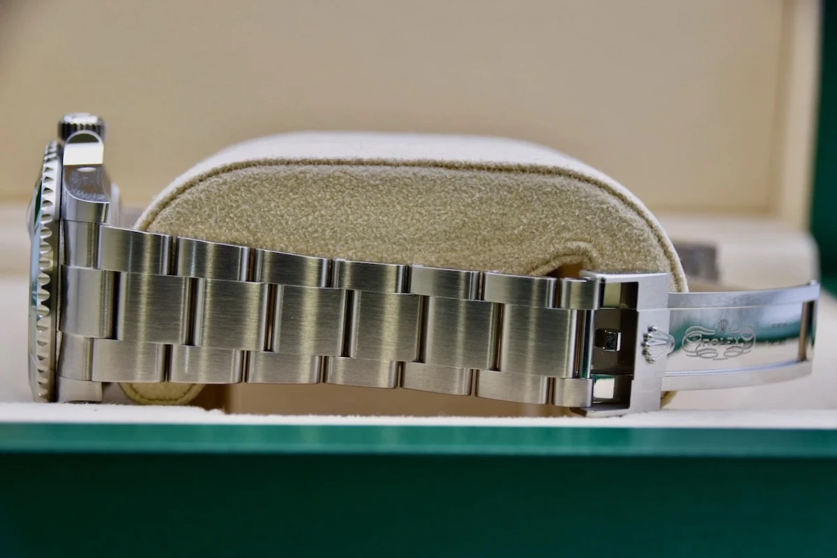 One of the most notable changes in the 126610LV is the introduction of a wider Oyster bracelet, which now measures 21mm compared to the 20mm on the previous model. The bracelet is made of Oystersteel and features the Oysterlock safety clasp, which ensures a secure fit on the wrist.